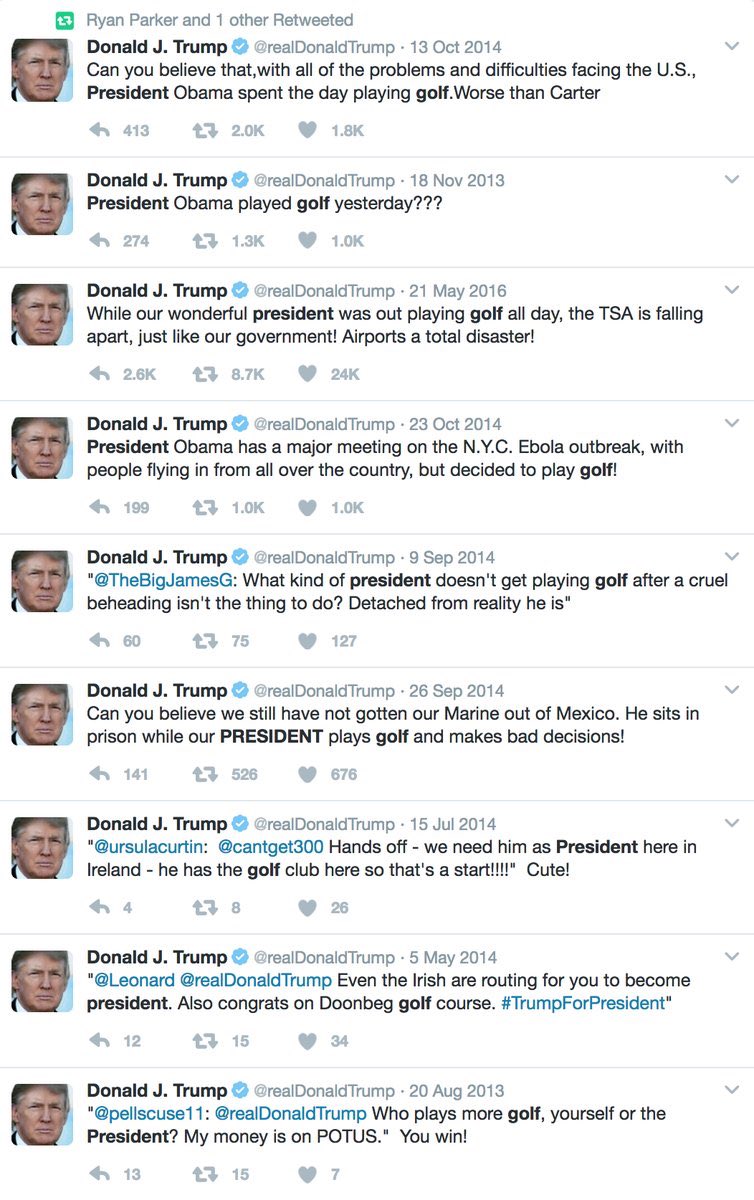 also I seem to recall the Rs having a field day with calling out Obama every time he played golf so....