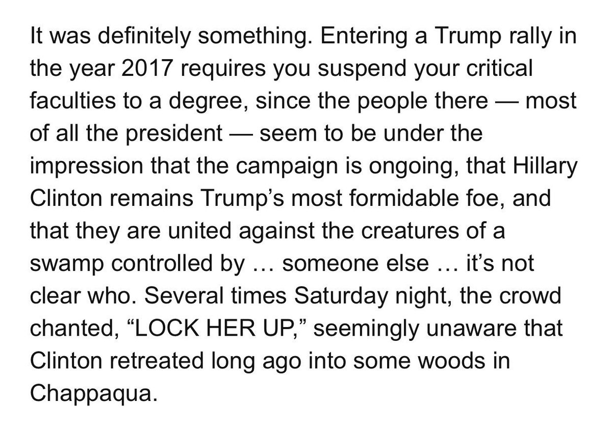 He also commented at the start that he was happy to be 100 miles away from the "Washington swamp" Isn't it his swamp now?