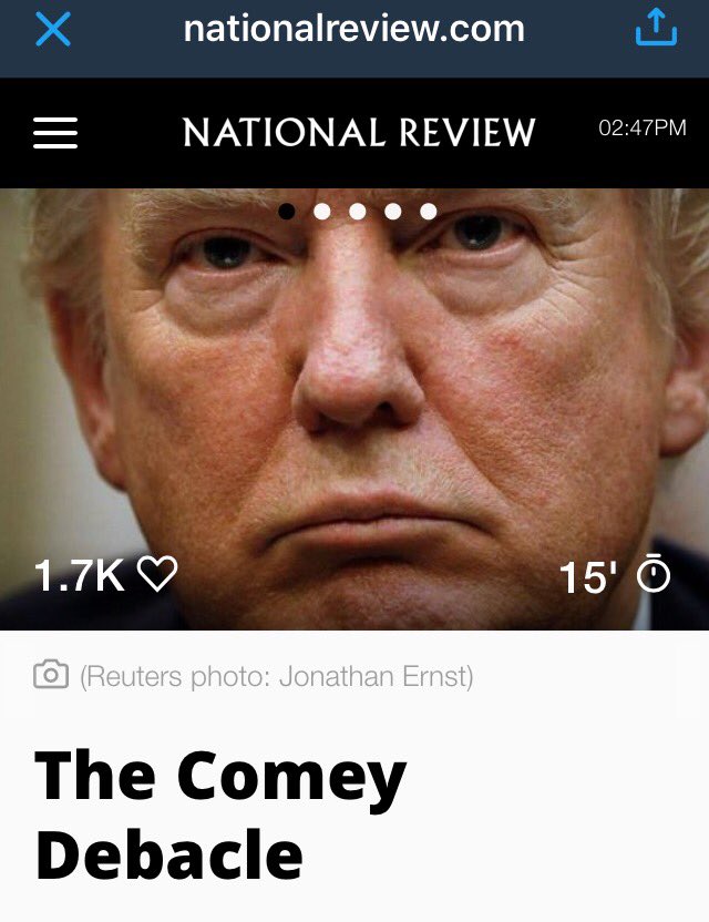 Never thought I would say that about NR, I love the intro.....Comey isn't a partisan issue. It's a democracy issue. Thanks @JonahNROpic.twitter.com/XRYXL4Of6s