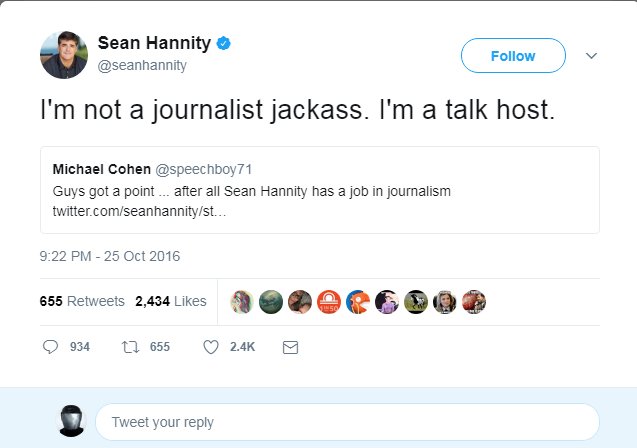 Hannity is the opposite of thinking conservatives like Buckley and George Will. Nobody of consequence takes him seriouslypic.twitter.com/2qUzHxP7To