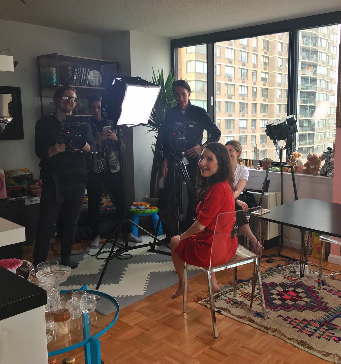 Came home from work today and my apartment had been turned into a film set! @JamieStelter taping with ELLEpic.twitter.com/qVNqSFvXYl