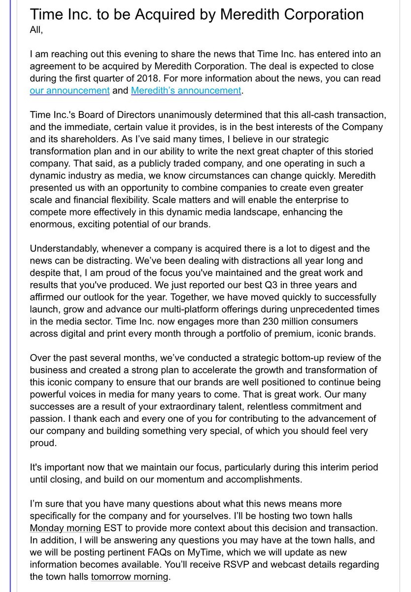 and no mention of the "best interests" of employees or readers. Just the shareholders.