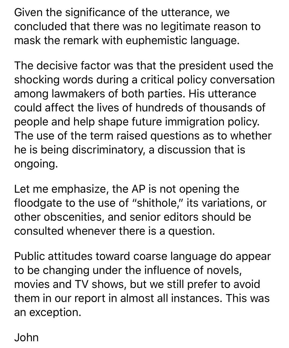 The line, "Let me emphasize, the AP is not opening the floodgate to the use of 'sh*thole'" gave me unexpected joy today.