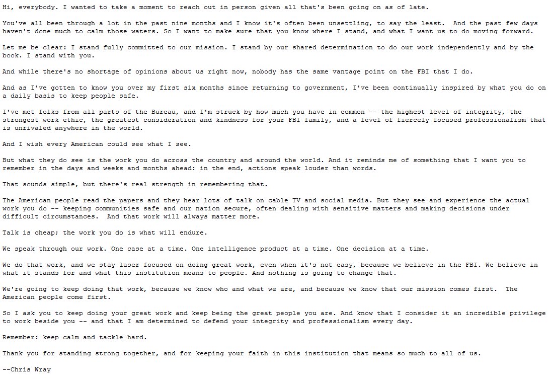 So the handful of people at the top of the FBI are trying to make it seem like the memo attacks all of the FBI. I don’t think rank and file can sign off on these fisa warrants. The FBI elites are trying to make it seem like an “us” vs them mentality when it’s only on them