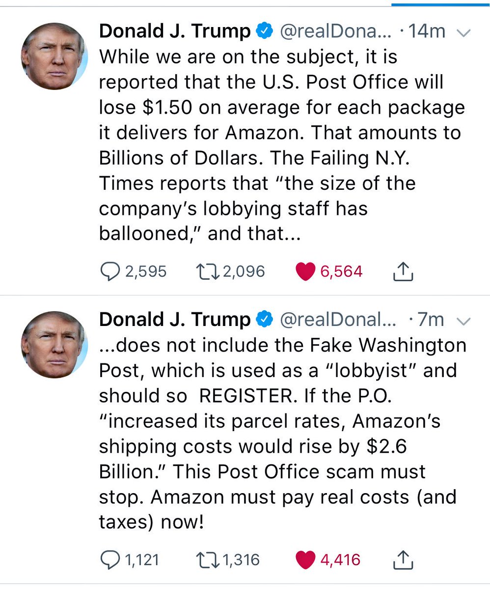@realDonaldTrump POTUS - you need to actually learn about the regs for USPS before you tweet - and know that your R cronies are the ones who forced USPS to be in the red with the prefunding mandate on retiree health care benefits. The USPS does not govt money.#dopeThanks. Twitter will use this to make your timeline better. UndoUndo