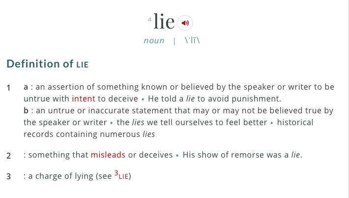 Brian, you are flat-out wrong. This is the Merriam-Webster definition of "lie" (noun). Trump's statement qualifies as a lie according to definition 1(b). Take a step back, try to look at this objectively (using third-party definitions of the word "lie"), and reevaluate.pic.twitter.com/gPY145lM9s