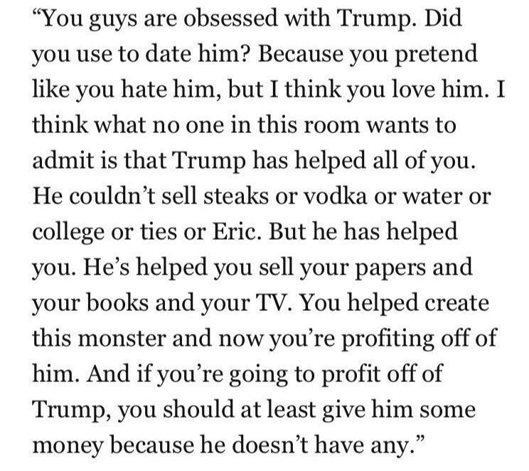 She totally called out the press for profiting from Trump, I think that is why the negative reaction.