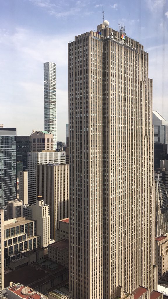 Rockefeller Center top right, Radio City Music Hall down below. Home of SNL/The Tonight Show/NBC/CNBC. (Yes I am ignoring the big building in this photo) Actually for a second it looked like the original WTC from the old enclosed observation deck.
