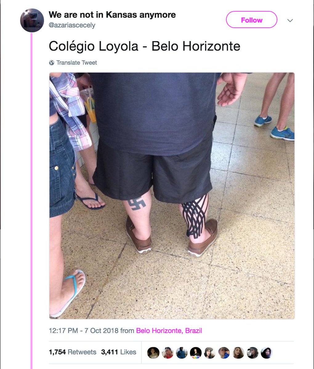 Three different Brazilian Twitter users have shared photos of swastikas at their polling centers today #Eleições2018pic.twitter.com/mVB23BXB2K