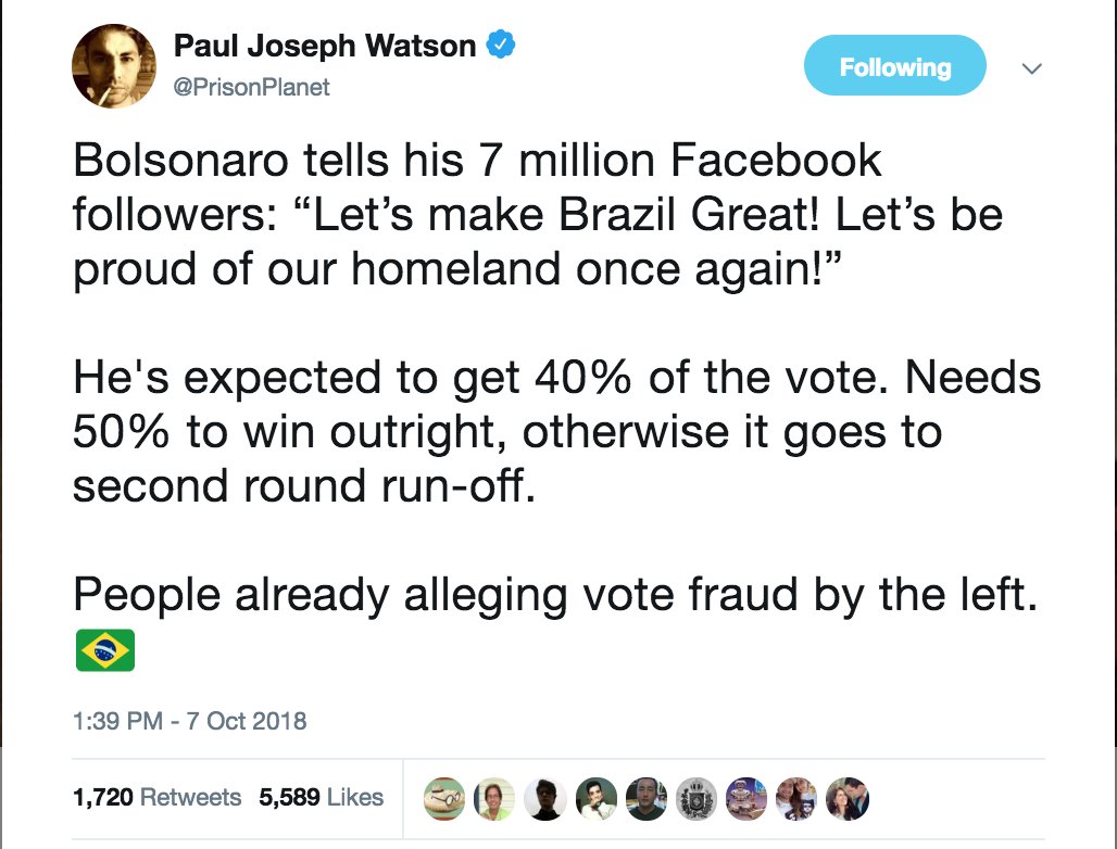 Here comes the English-speaking far right, picking up Bolsonaro's huge lead in the polls. Like clockwork. #Eleiçoes2018pic.twitter.com/JSCt7zq3SZ