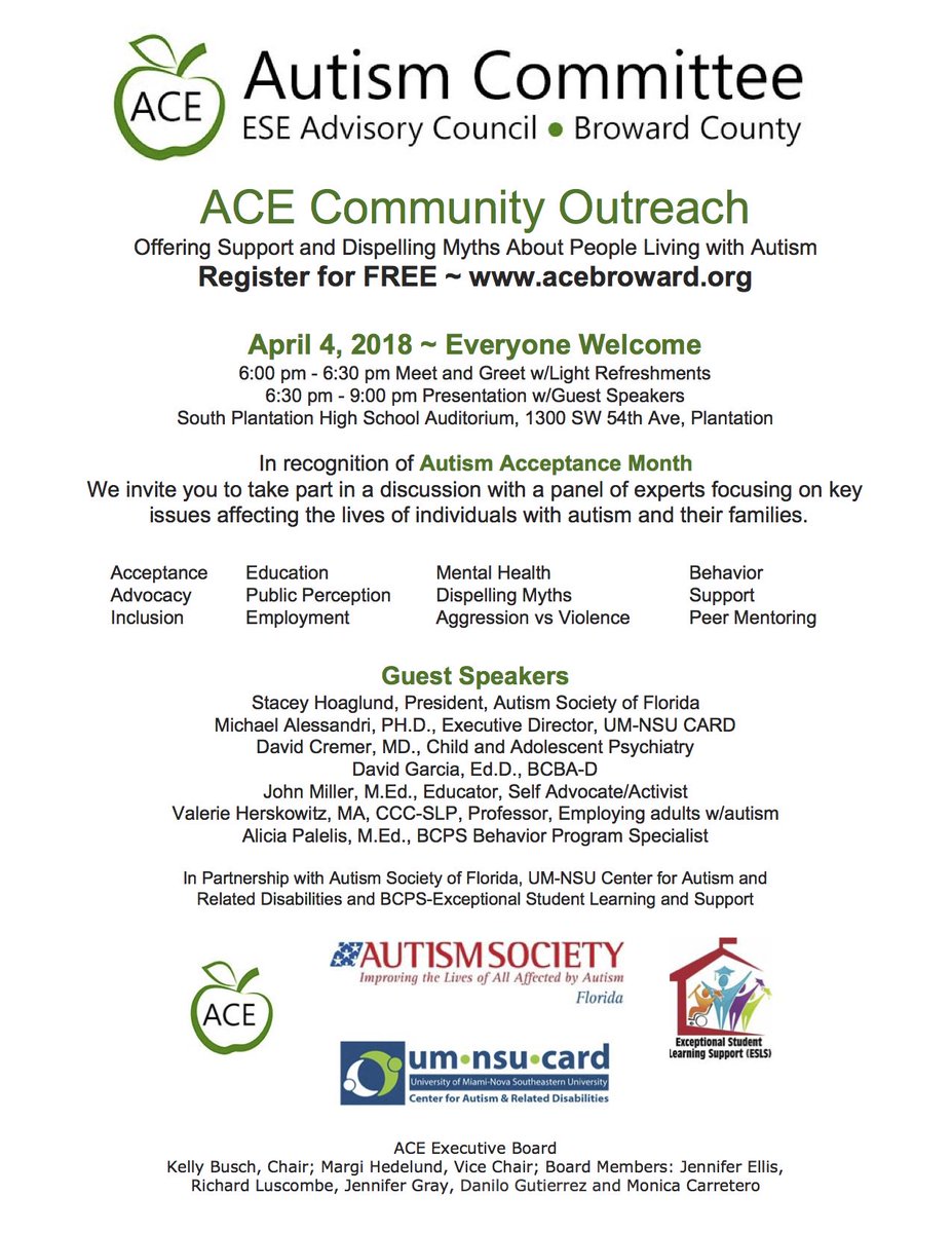 @RobertwRuncie Please spread the word. There has been increased incidents of bullying due to fear and misunderstanding abut autism, stories about schools becoming less tolerant of our differences and more motivated to segregate our children. http://www.acebroward.org#ACEpic.twitter.com/Asm4Q2RYsT