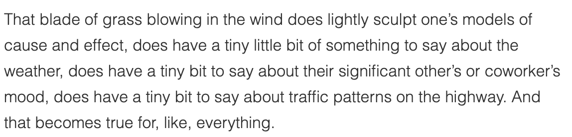 i mean something like everything touches on influences relates to matters for everything else (but not *equally* so - you're free to discard but don't need because the associations are instant)