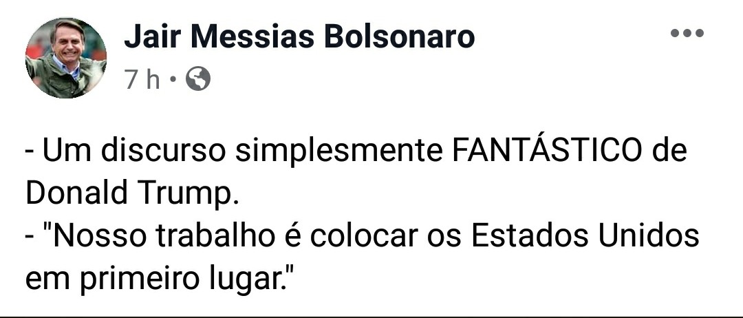 A gente sabe que o seu trabalho também é colocar os Estados Unidos em primeiro lugar, Bolsonaro. Bom garoto.