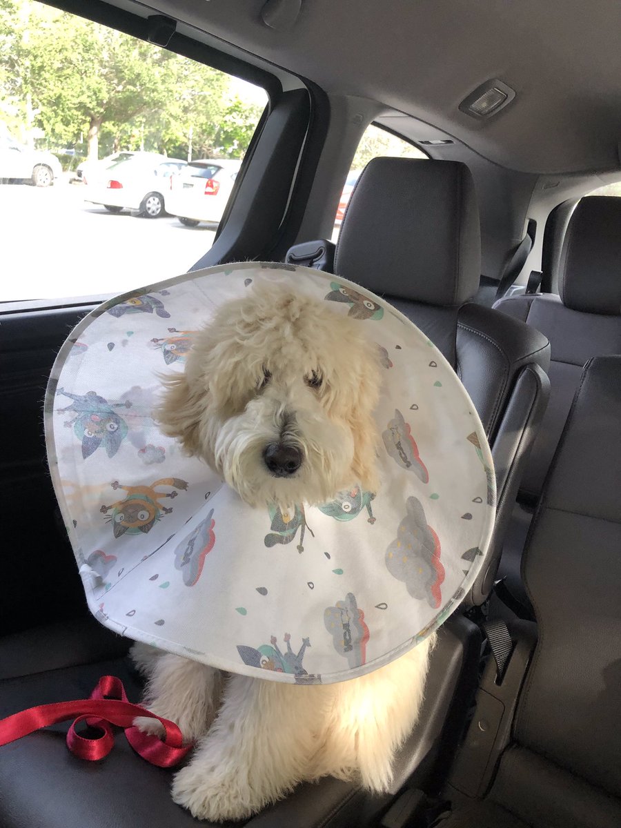 The onesie is the best, you will need to bring her to my house for a play date with my 2 golden doodles and what kind of doodle is she?