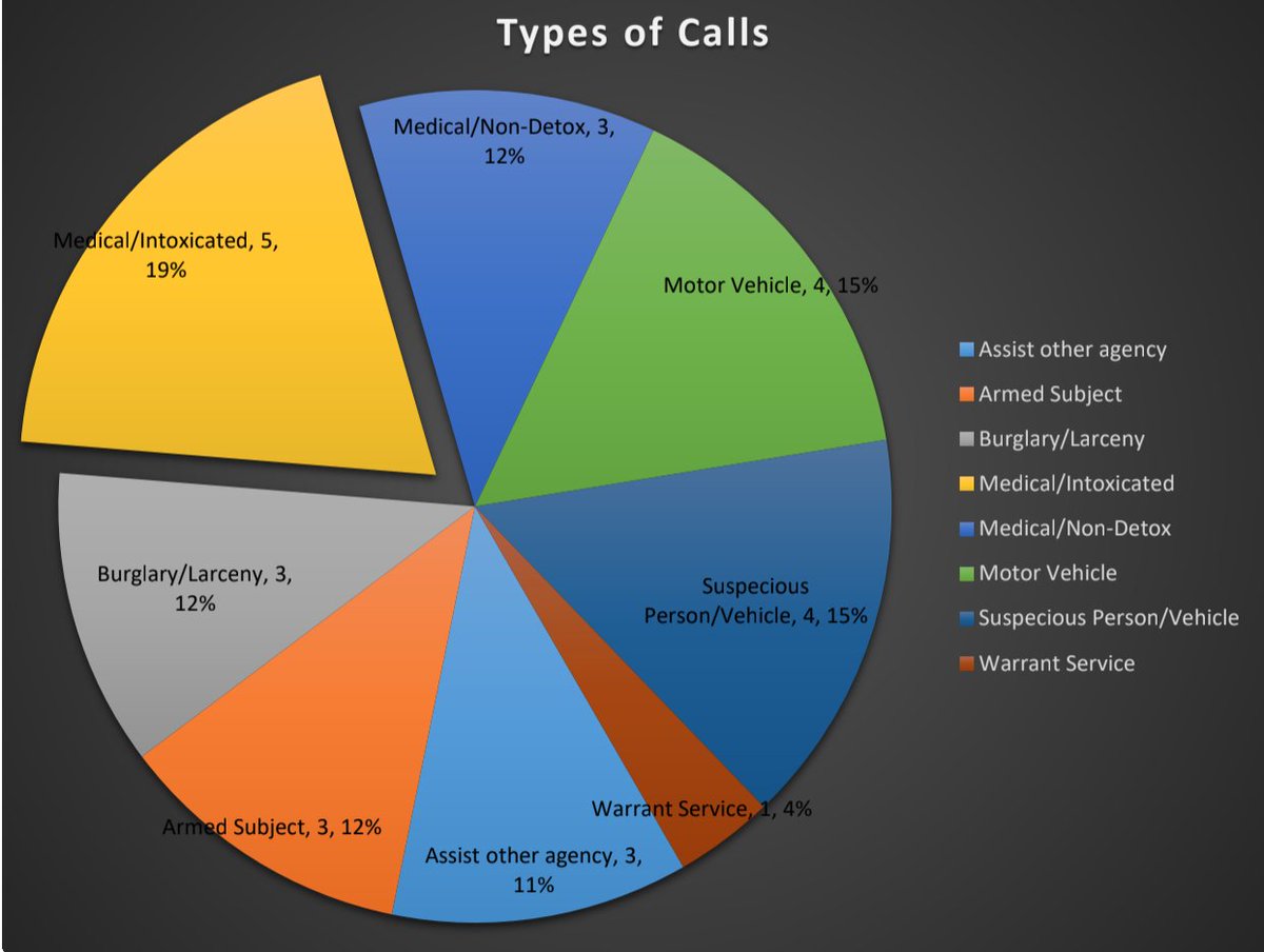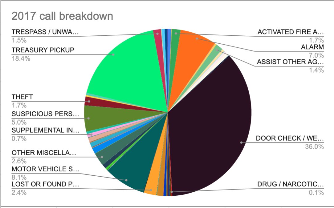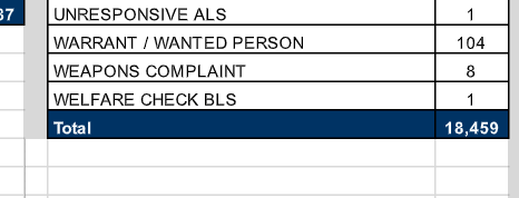 And let's look at what those calls actually ~are~. Even if we take their most active year (2017) the vast majority of calls were door/welfare checks and treasury pickups.pic.twitter.com/fu1ihf3Izb