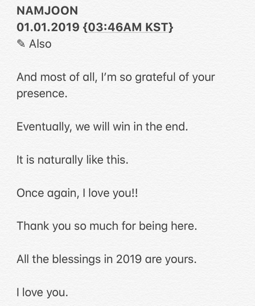 NAMJOON 01.01.2019 {03:36AM KST} ✎ Everyone I love you