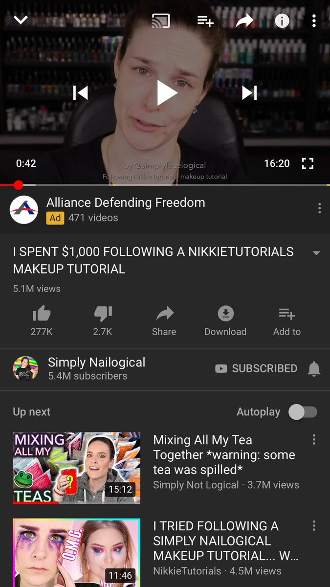 .@TeamYouTube can you please stop showing alliance defending freedom ads in videos. They are incredibly homophobic, and they shouldnt be allowed to show on your platform. I just want to watch @nailogical videos in peace without being told I’m evil for being gay.pic.twitter.com/8lYwaA20AT