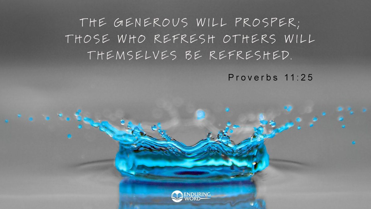 God has promised to bless the generous soul and will do so with riches in this world, the next, or both. “If I want to get water I must give water. Though that seems a strange way of self-serving I pray you try it.” (Spurgeon) http://enduringword.com pic.twitter.com/QFQO1ghgEv