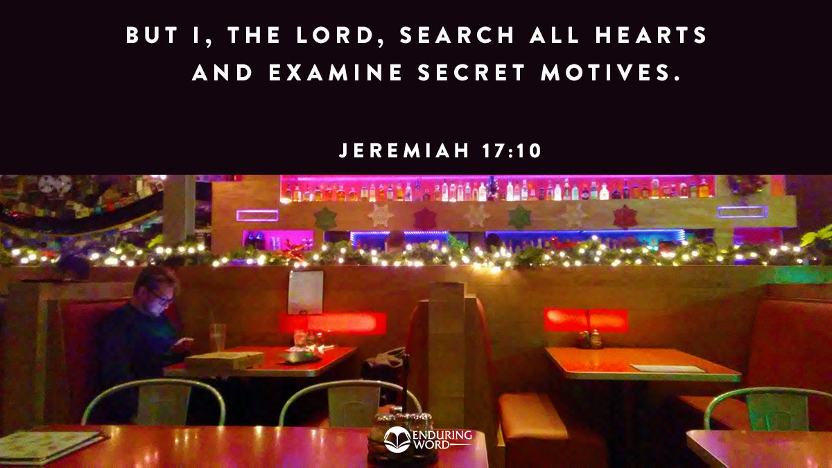 Though knowing the heart of one’s self or others is difficult and sometimes impossible, God searches, tests, and knows the heart and mind. It is wise to trust what God says about us more than what we think or feel about ourselves. http://enduringword.com pic.twitter.com/Wy4rYvmcRf