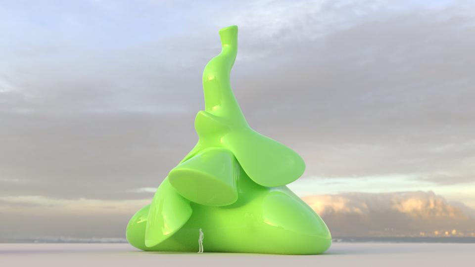 Seen here: "Homage au Dali" by Jack Champion with the PlayAlchemist pyramid in the background at sunset, 2022 (photo by Stephane Lanoux)