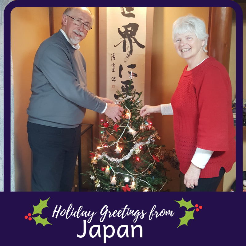 Roger and Kathy, volunteers at the World Friendship Center in Japan, decorate the Christmas tree that is displayed in the main room of the house at the World Friendship Center. The scroll behind the tree says "Peace for the whole world."pic.twitter.com/IsKjlSqmBt
