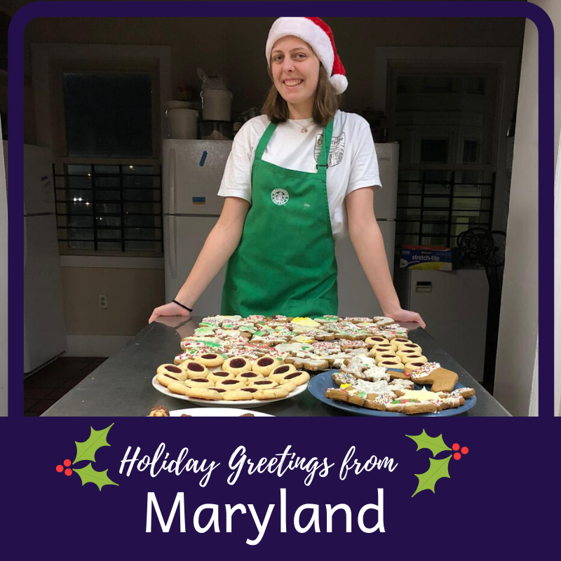 Elli, who is serving at Project PLASE in Baltimore, gets into the Christmas spirit by baking cookies with another volunteer