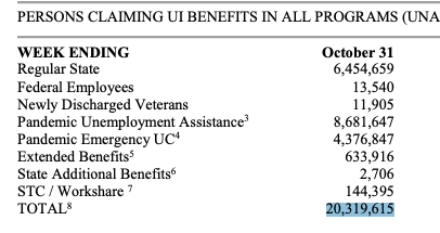 Red flag: 4.4 million Americans are receiving "Pandemic Emergency Unemployment Compensation," up from 1.4 million in August. That's the program for people who have been unemployed for months and exhausted their regular UI. **It will end on Dec. 26 if Congress does not act**pic.twitter.com/tzDRIbW2tE