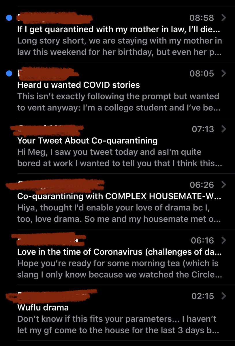 want these stories and more? venmo me $1 and i’ll donate to people affected by corona meg-zkn (with permission from people who sent)