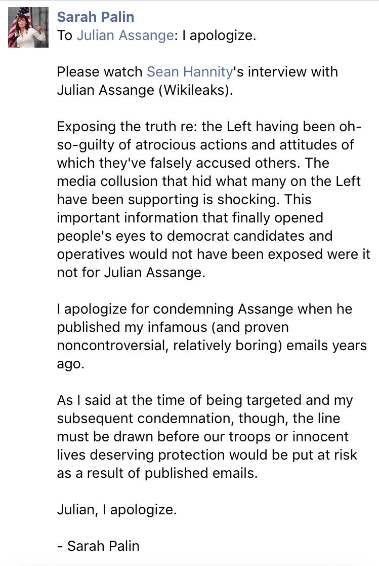@SouthernKeeks She apologized to Assange and changed her mind. -