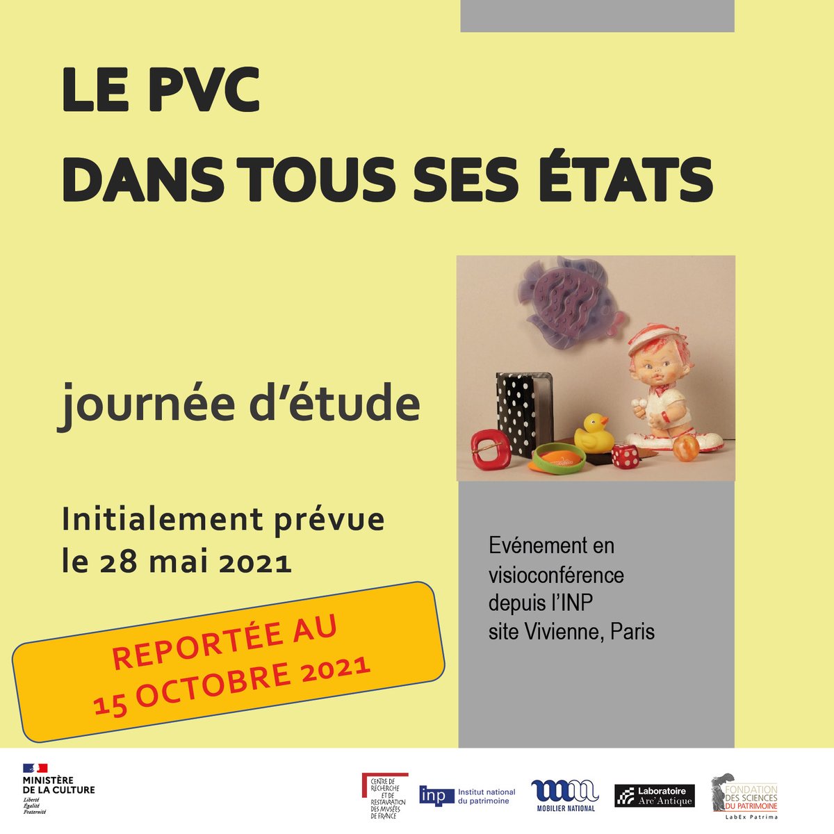 #Report En raison du contexte sanitaire, la#journéedétude Le PVC dans tous ses états prévue à l'@Inp_patrimoine à Paris le 28/05/21 est reportée au 15/10/21 (en visio). inscription & prog précisés avant l'été.@MinistereCC@MNGBS@FSP_Patrima#arcantiquepic.twitter.com/TKa9HmhPZ3