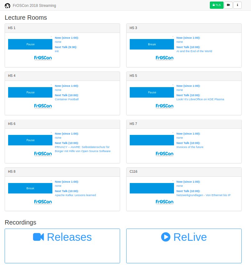 Gleich (um 10) geht’s los mit der FrOSCon 13. Wir streamen für euch aus 8 Sälen. https://streaming.media.ccc.de/froscon2018/ ^depic.twitter.com/JV6EAykVm1