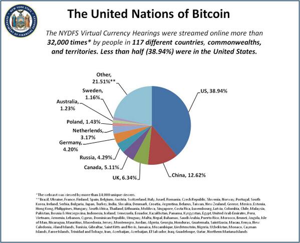 RT @BenLawsky: CHART: United Nations of #Bitcoin. DFS hearings had 14,000+ viewers (32K streams) from 117 countries.pic.twitter.com/mE2Vrw5hAF