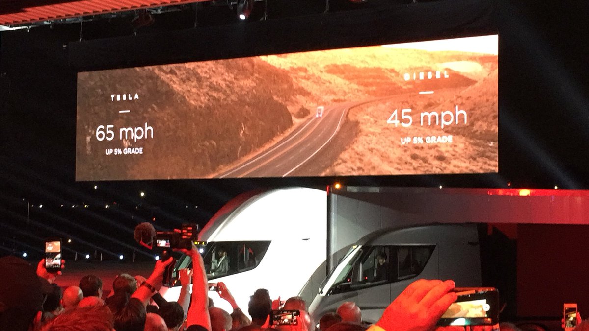 #TeslaSemi has a 500mi range at highway speeds and cargo. Enough to deliver w/o need to charge. pic.twitter.com/80iFct01xD