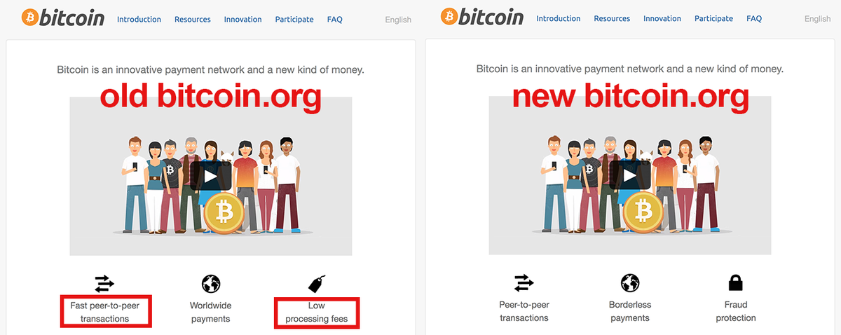 http://Bitcoin.org  removes mention of fast transactions and low fees for Bitcoin Core (BTC). The old version did a great job of describing Bitcoin Cash. pic.twitter.com/qPiASLETzq
