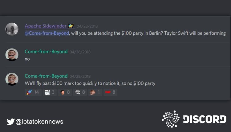 "We'll fly past $100 mark too quickly to notice it, so no $100 party" #IOTA #Q #Qubic #DLT #Tangle pic.twitter.com/AMr5nY4uTH