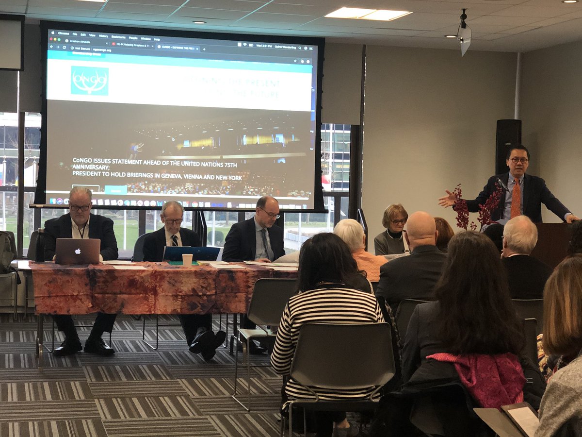 Happening now: @bautista_levi explains that CoNGO will be launching a Committee on Sustainable Human Settlements, which has many new NGOs, which will work with @UNEP. They are also exploring an NGO Committee on #Sports. #make2020countpic.twitter.com/oDVOxpDASF
