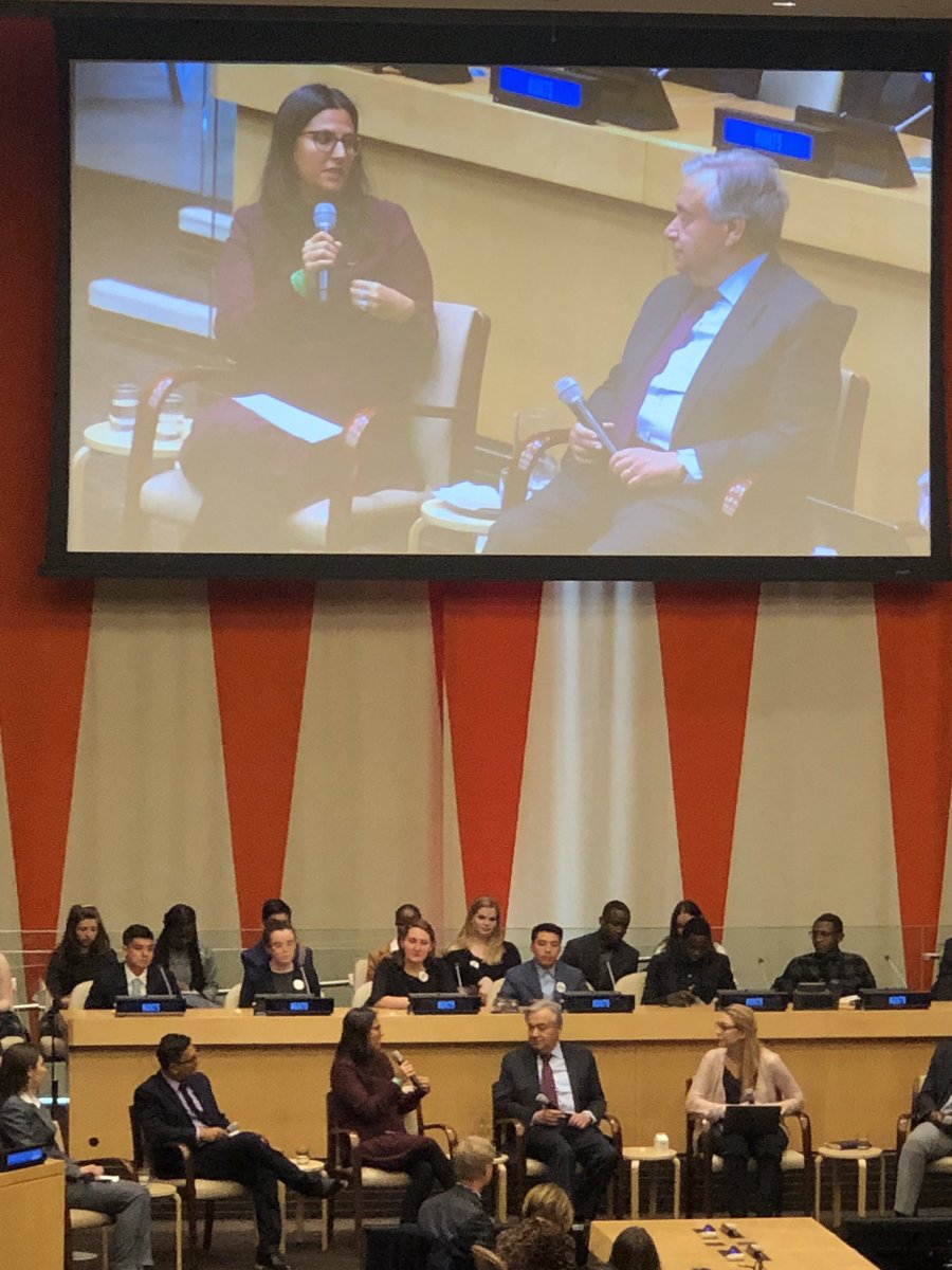 Youth leaders discuss the importance of the return of displaced and resolution of conflicts by @UN’s 100th anniversary in 2045 at @JoinUN75’s #YouthDialogues with the #SecretaryGeneral. #make2020count