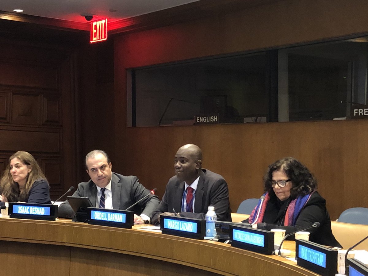 Ordell Barman of @Trinbago_UN delivers remarks on behalf of Ambassador Beckles. He explains that #Trinidad and #Tobago is "no stranger to the effects of climate change" and that the region is susceptible to #naturaldisasters. #make2020countpic.twitter.com/lONDgmbhuj