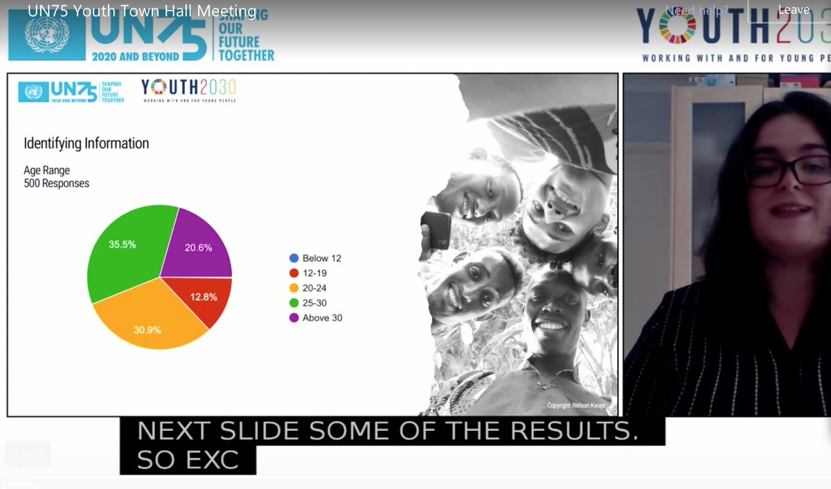 Happening Now: MGCY Representative explains the significance of the @JoinUN75 Youth Survey, and its results.