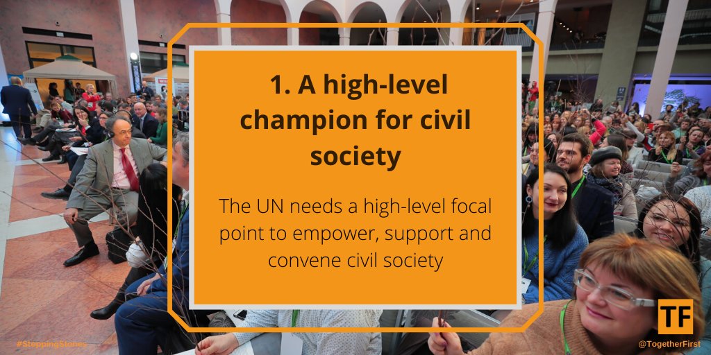 @TogetherFirst's #SteppingStones Report outlines the ways that increased #CivilSociety representation at the @UN would empower citizens. #MakeUN75Count