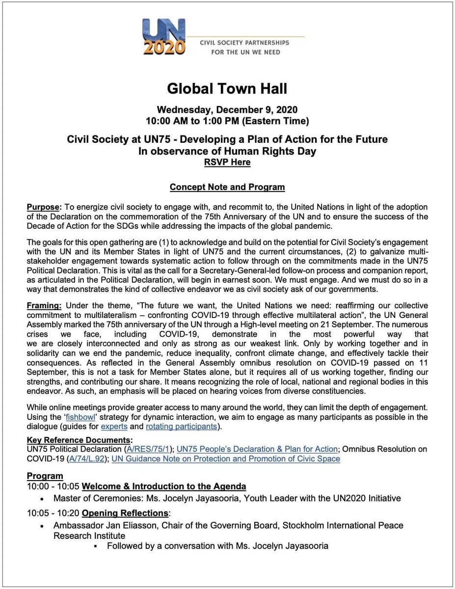 #MakeUN75Count and join us for a Global Town Hall to reflect on the urgent need to support and strengthen international cooperation in #UN75 and beyond. #MultilateralismMatters 📅 Wednesday, December 9 ⏰ 10:00am-1:00pm EST https://us02web.zoom.us/webinar/register/WN_g84C-b9HTzKrjPu7g1b6Cg …pic.twitter.com/5ZOpXuWiKO