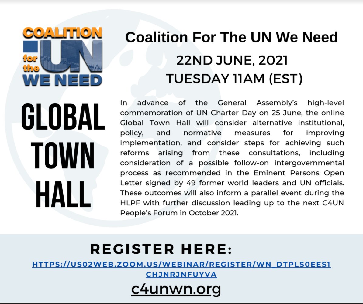 Join C4UNWN's "Global Town Hall" to review UN reform recommendations from the Post-UN75 series & assess ways the UN can better deliver on the 12 UN75 commitment areas.
