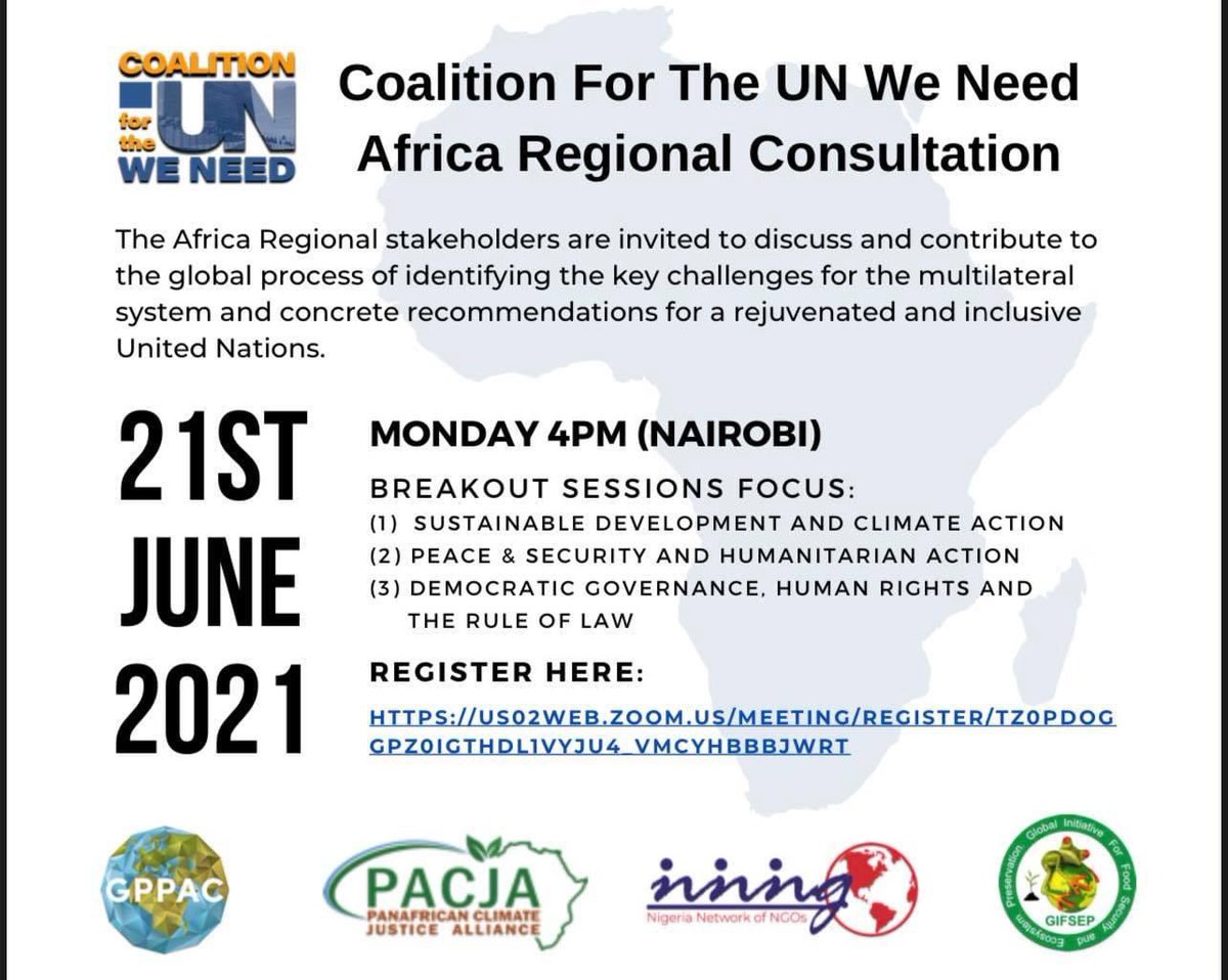 #MakeUN75Count by joining C4UNWN & GPPAC Southern Africa Region for our "Africa Regional Consultation" on challenges & strategies for strengthening multilateralism. #MultilateralismMatters.
