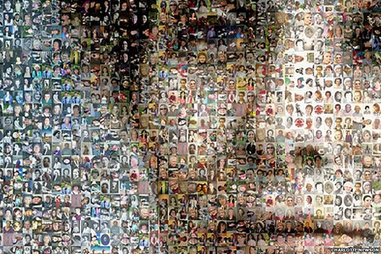 Charlotte Newson,'Women Like You' mosaic of suffragette Emmeline Pankhurst created using many smaller images of inspiring women