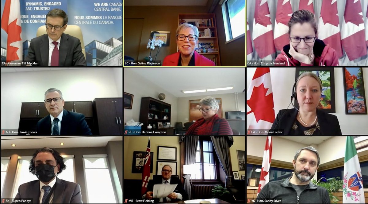Fighting the pandemic is a Team 🇨🇦 effort. Today I chaired a meeting with @MonaFortier, @bankofcanada Governor, and provincial and territorial Finance Ministers to discuss the current state of the economy and how to build back a stronger, more inclusive country for everyone.pic.twitter.com/UFOB0BEHUn