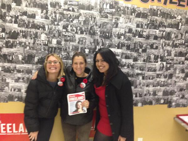 @cafreeland and her campaign team as they approach the Nov. 25 by-election. Wish I could be there to volunteer!#TorCenThanks. Twitter will use this to make your timeline better. UndoUndo