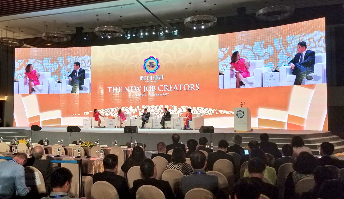 Discussion sur défis + perspectives que les nouvelles technologies présentent pour le marché du travail et comment les entreprises et gouvernements peuvent travailler ensemble. #APEC2017pic.twitter.com/0qaf2PDfVN