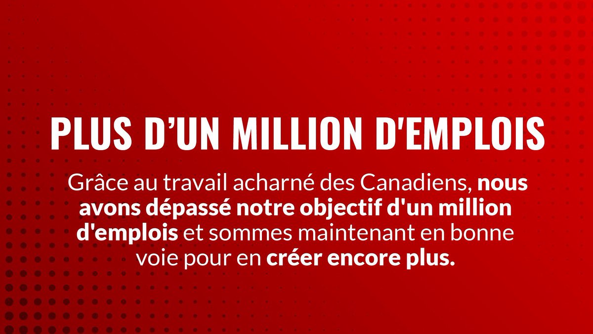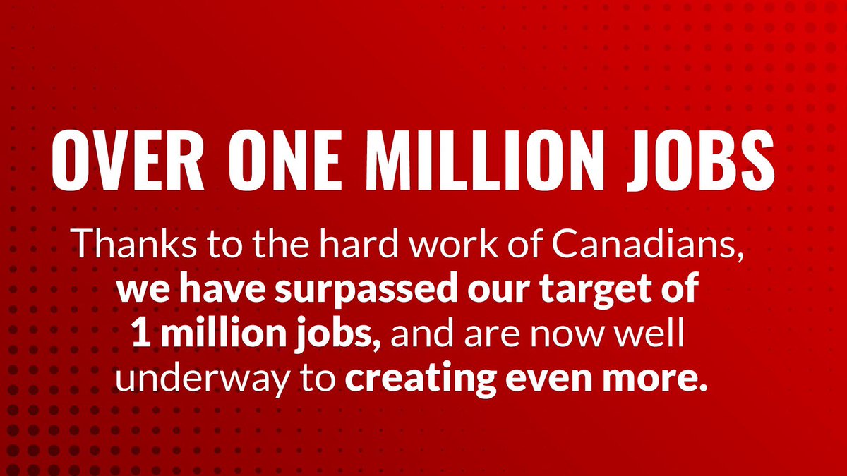 Our economic plan is working. And thanks to the hard work of Canadians we continue to surpass our target of 1 million jobs!