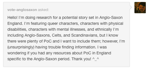 Medievalpoc Q&A on tumblr with links and resources: POC in England c. 500 A.D. http://medievalpoc.tumblr.com/post/113091549173 …pic.twitter.com/NIkXnTXw5Q