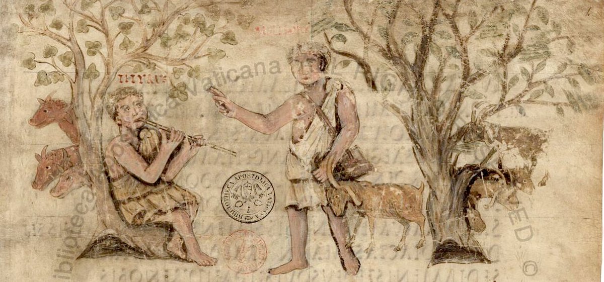 Herders w/ their cattle & goats in a 5thC ?British #landscape [from 'Roman Vergil', f.1r, http://digi.vatlib.it/view/MSS_Vat.lat.3867 …]pic.twitter.com/1LiaITCImQ